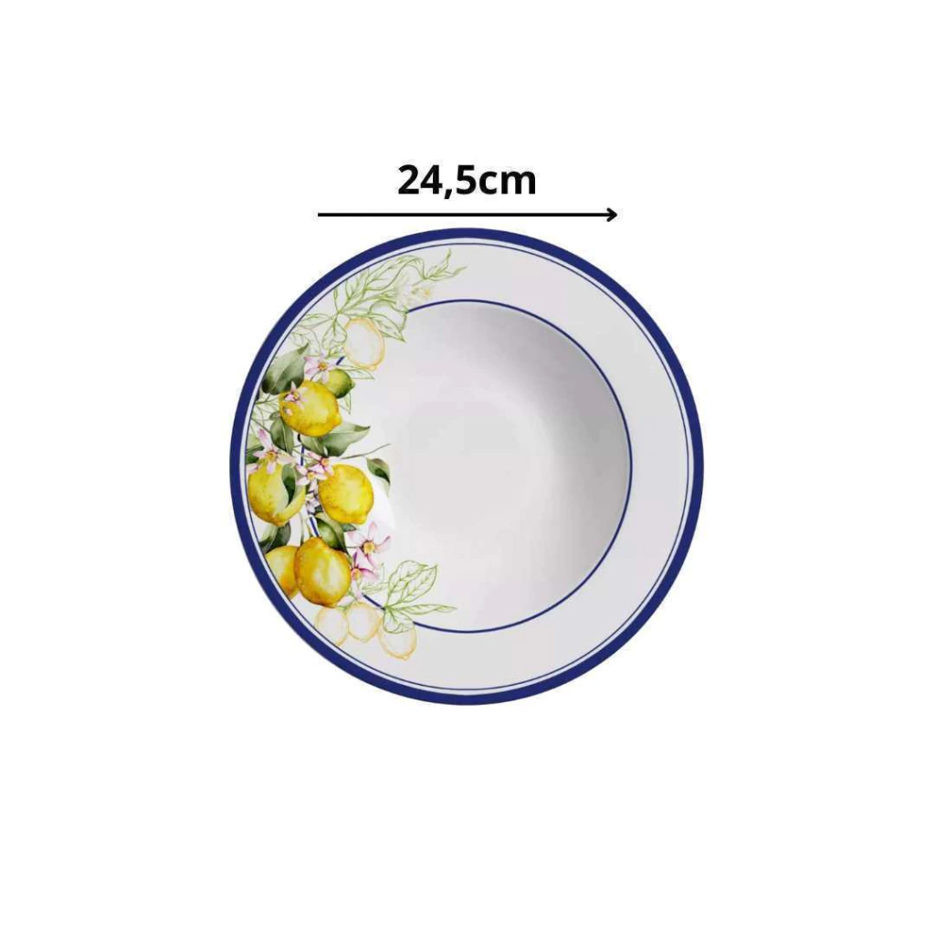 O prato fundo da linha Sorrento tem um estilo clássico e elegante, perfeito para servir sopas, caldos e pratos mais líquidos de forma charmosa.