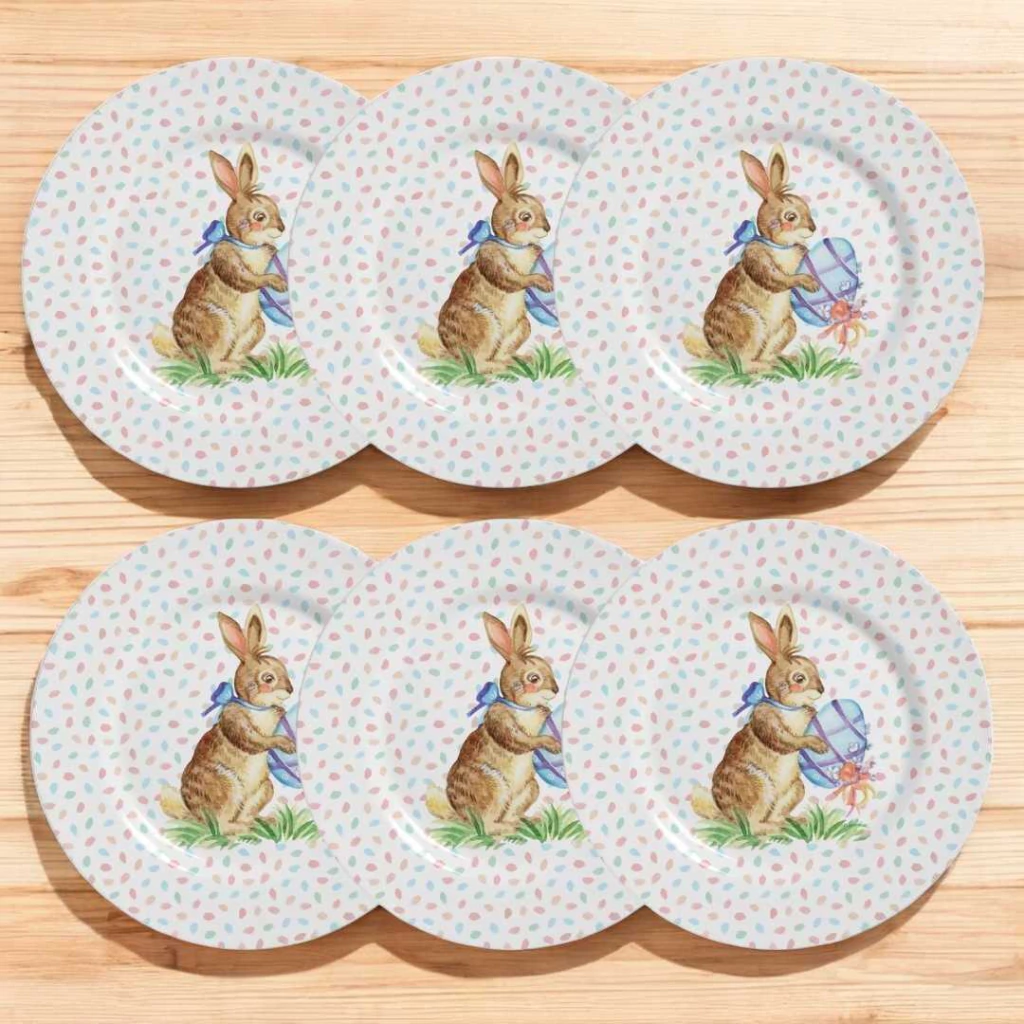 KIT 6 PRATOS RASOS PÁSCOA COLOR RABBITS POA (1156-101B) 1ª LINHA ALLEANZA