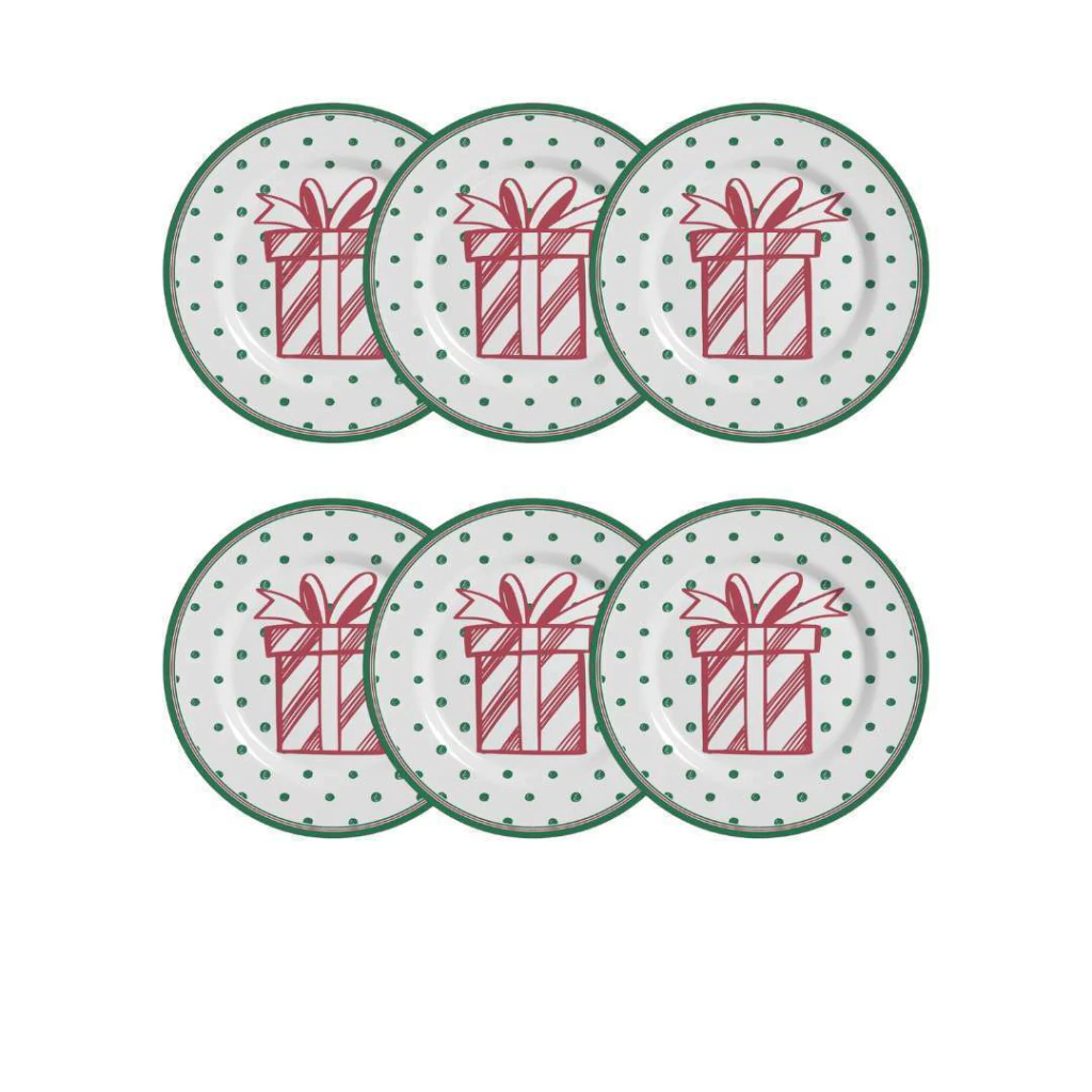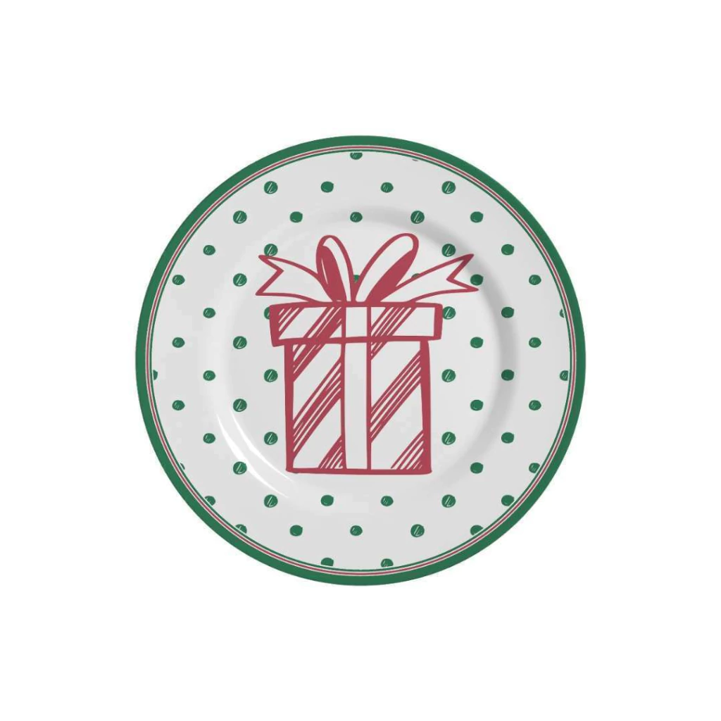 Com estampa de uma caixa de presente vermelha e bordas verdes, traz um toque especial para a mesa.