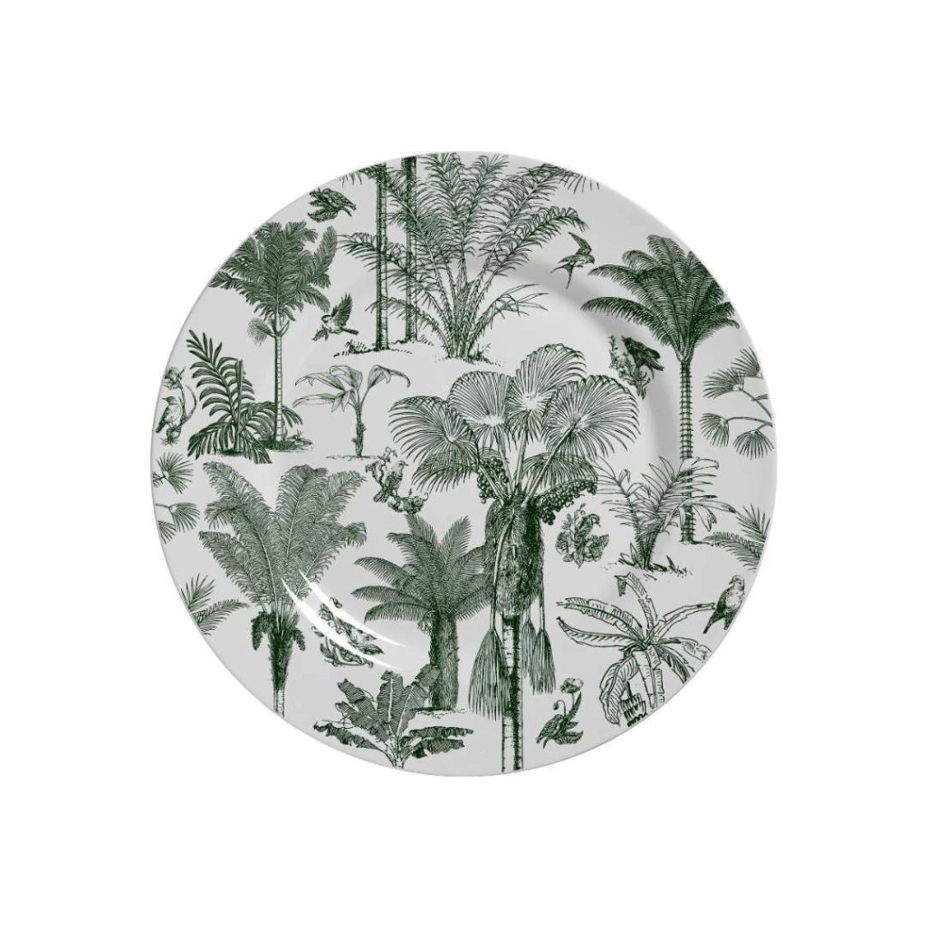 A beleza natural em forma de louça. Com estampa de diferentes tipos de árvores em tons de verde, o Prato Tropicale traz frescor e elegância para a mesa. Ideal para compor uma decoração leve, sofisticada e cheia de personalidade.