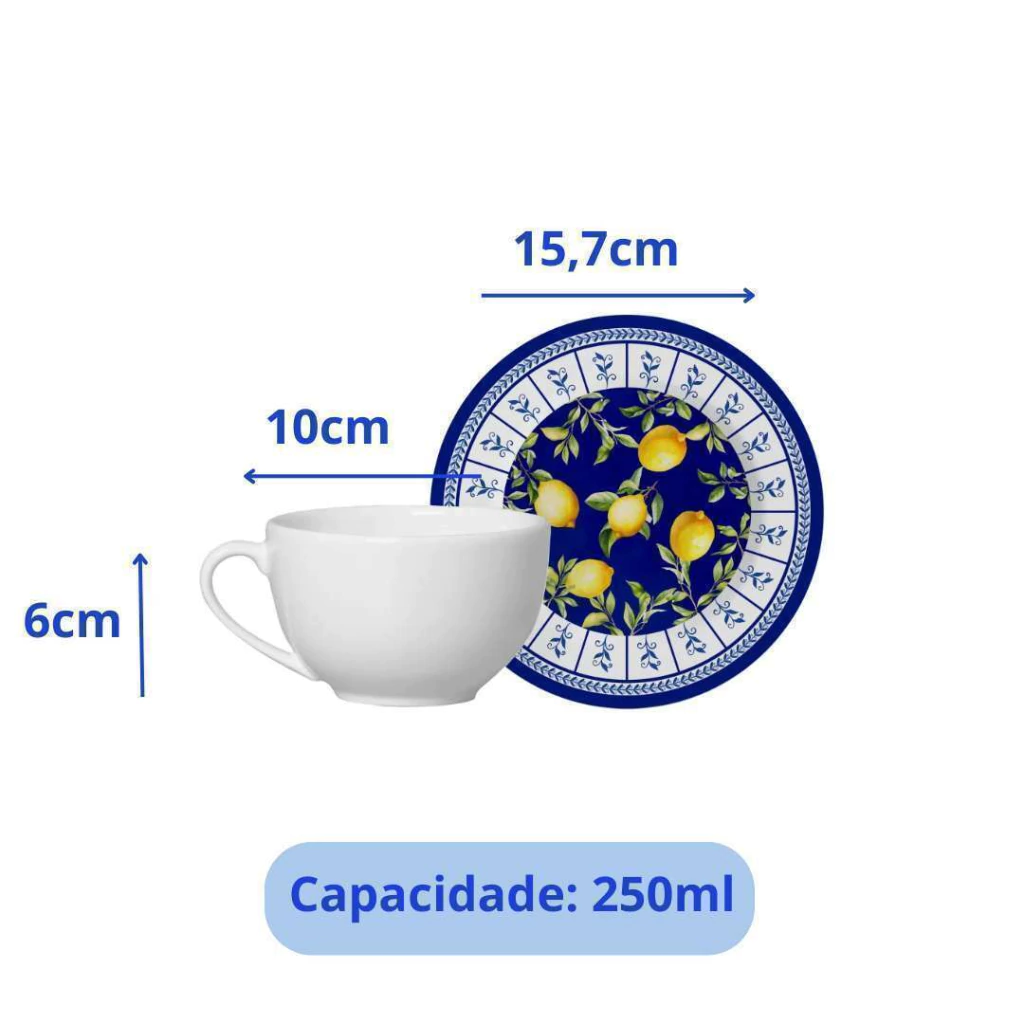 KIT 6 XÍCARAS CHÁ BRANCA COM PIRES LIMONE 1° CLASSIFICAÇÃO ALLEANZA