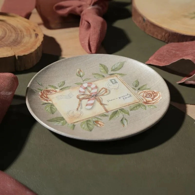 Com estampa charmosa inspirada em postais natalinos, este prato de sobremesa une tradição e delicadeza em cada detalhe. Suas ilustrações temáticas criam uma mesa festiva e acolhedora. Ideal para servir doces, tortas e sobremesas nas celebrações de Natal com elegância.