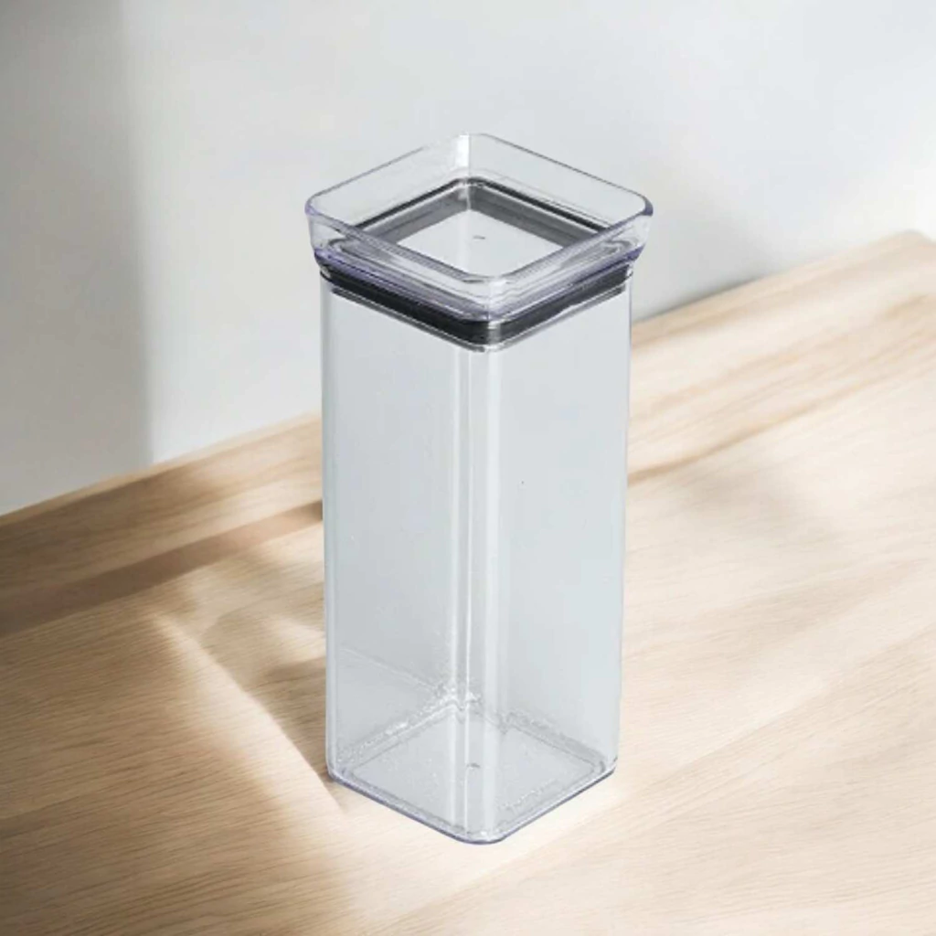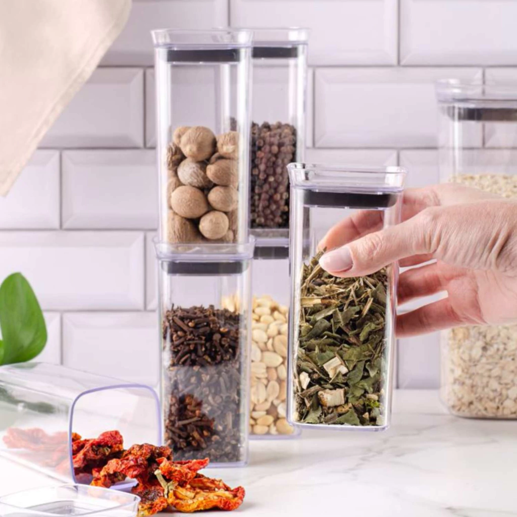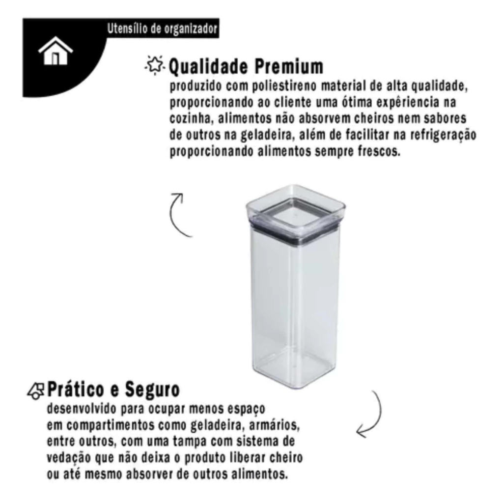 Apresenta um design que otimiza o espaço de armazenamento em armários e despensas. Fabricado em material transparente que permite visualizar facilmente o conteúdo armazenado.