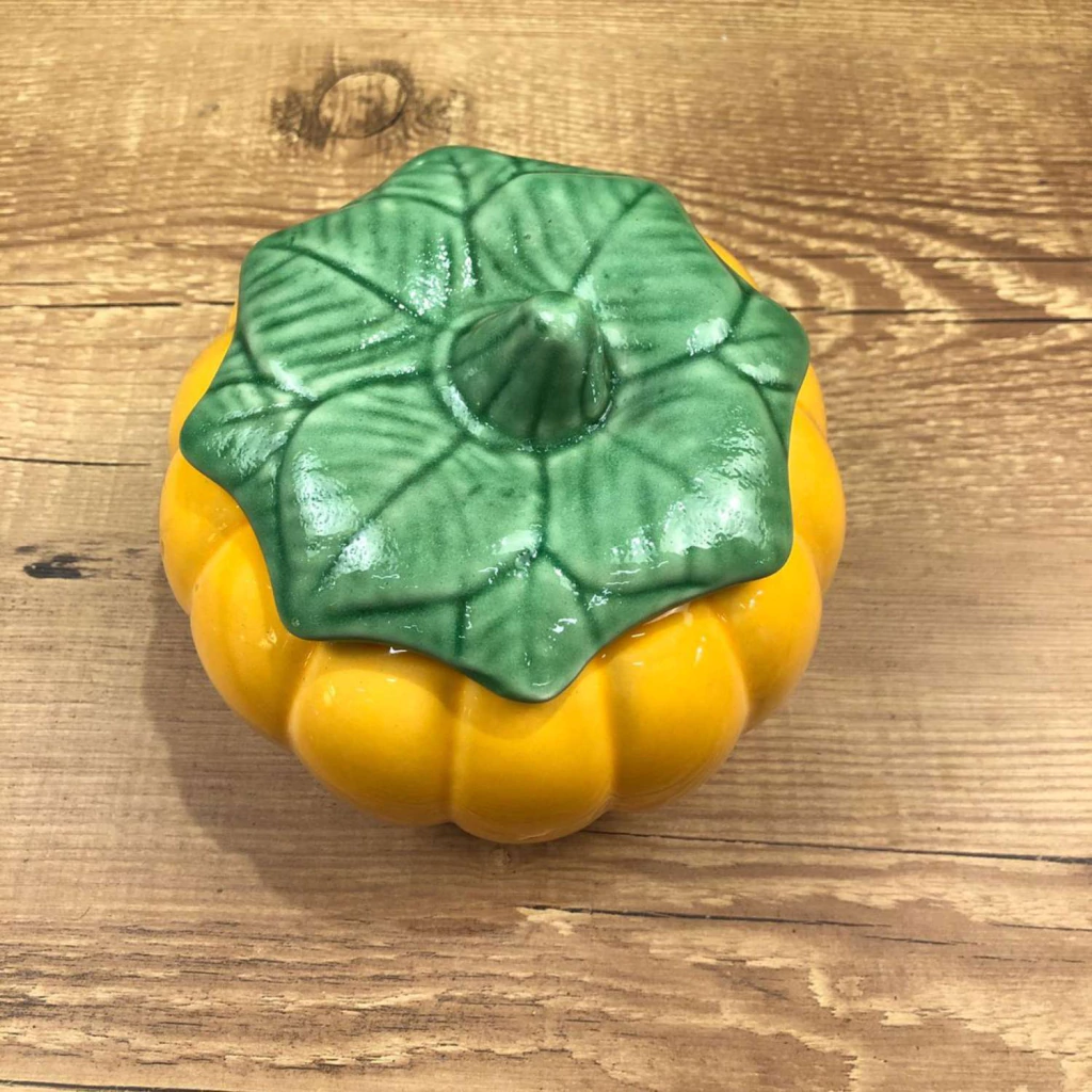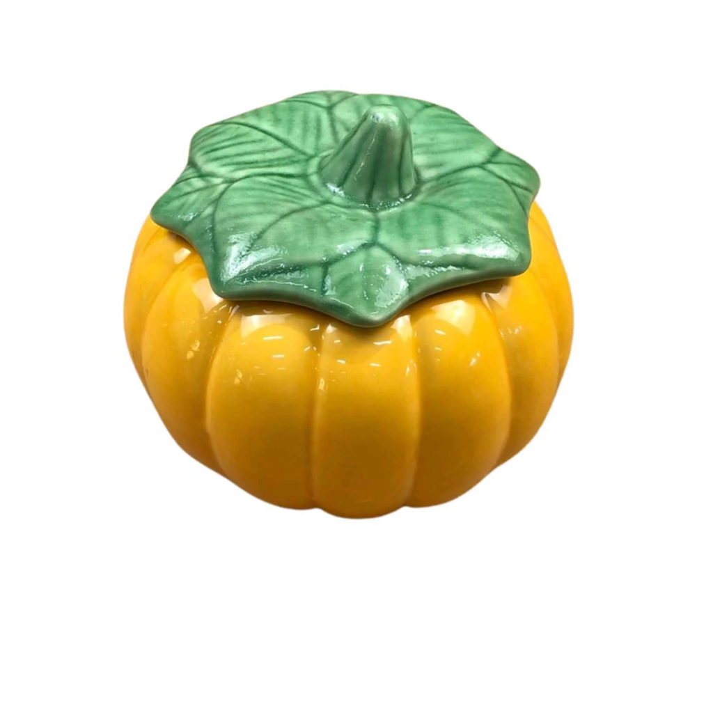 Apresenta um design encantador e único em forma de moranga amarela, inspirado na natureza. Possui uma superfície brilhante que realça o aspecto da cerâmica, proporcionando um visual elegante e rústico ao mesmo tempo.