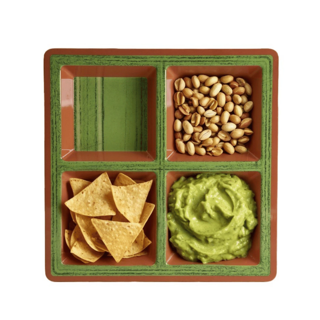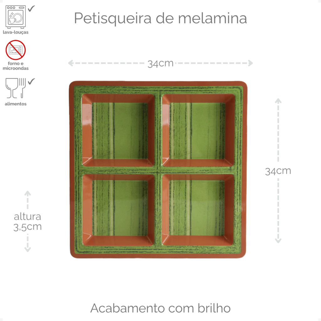 Petisqueira com 4 divisórias, perfeita para servir petiscos variados com praticidade.