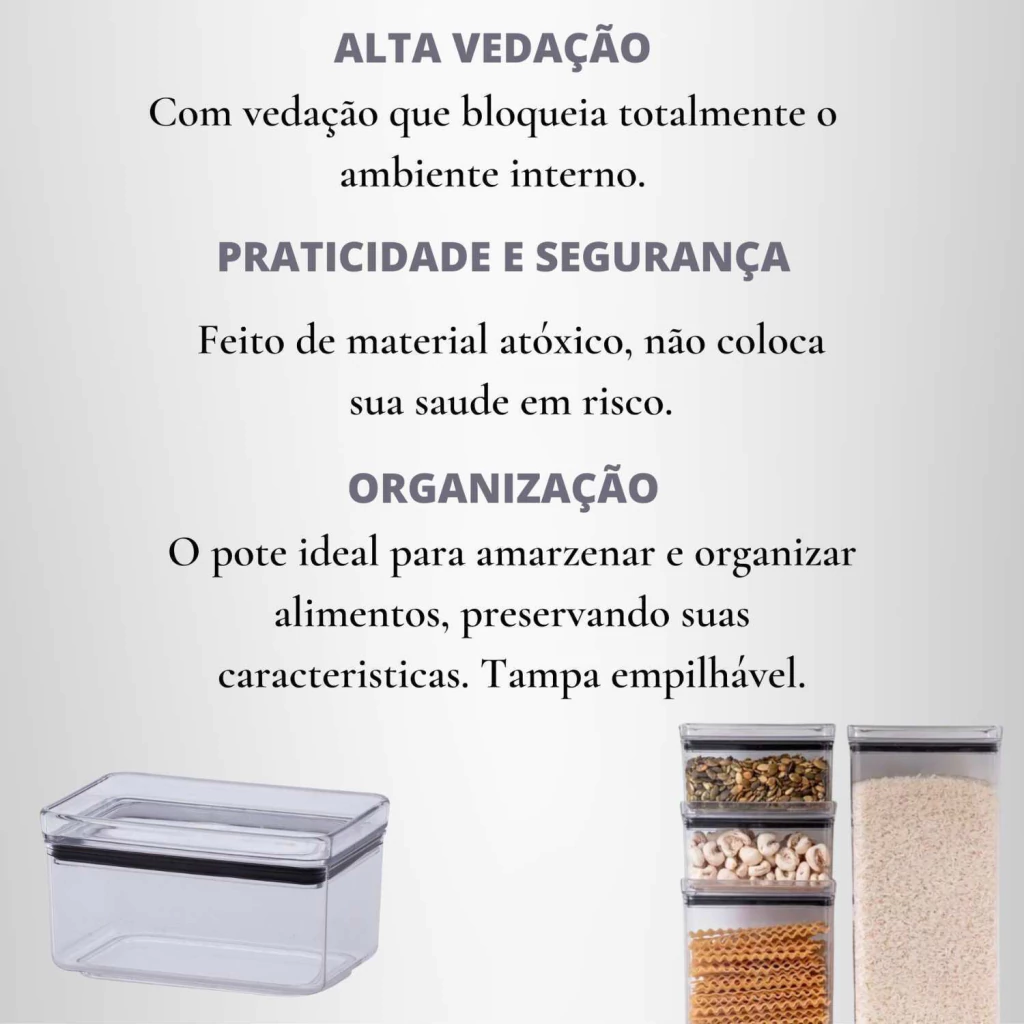 Ideal para armazenar pequenas porções de alimentos secos como grãos, especiarias, chás, café, ou pequenos petiscos.