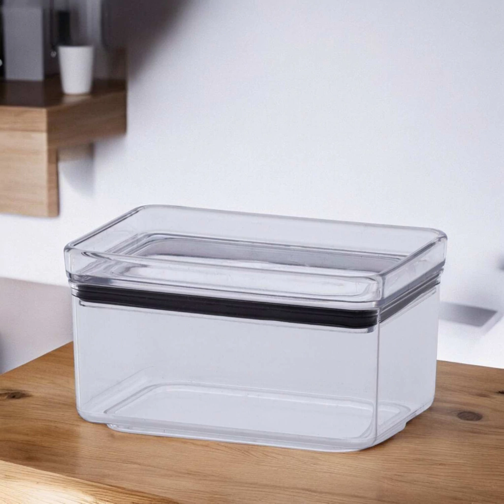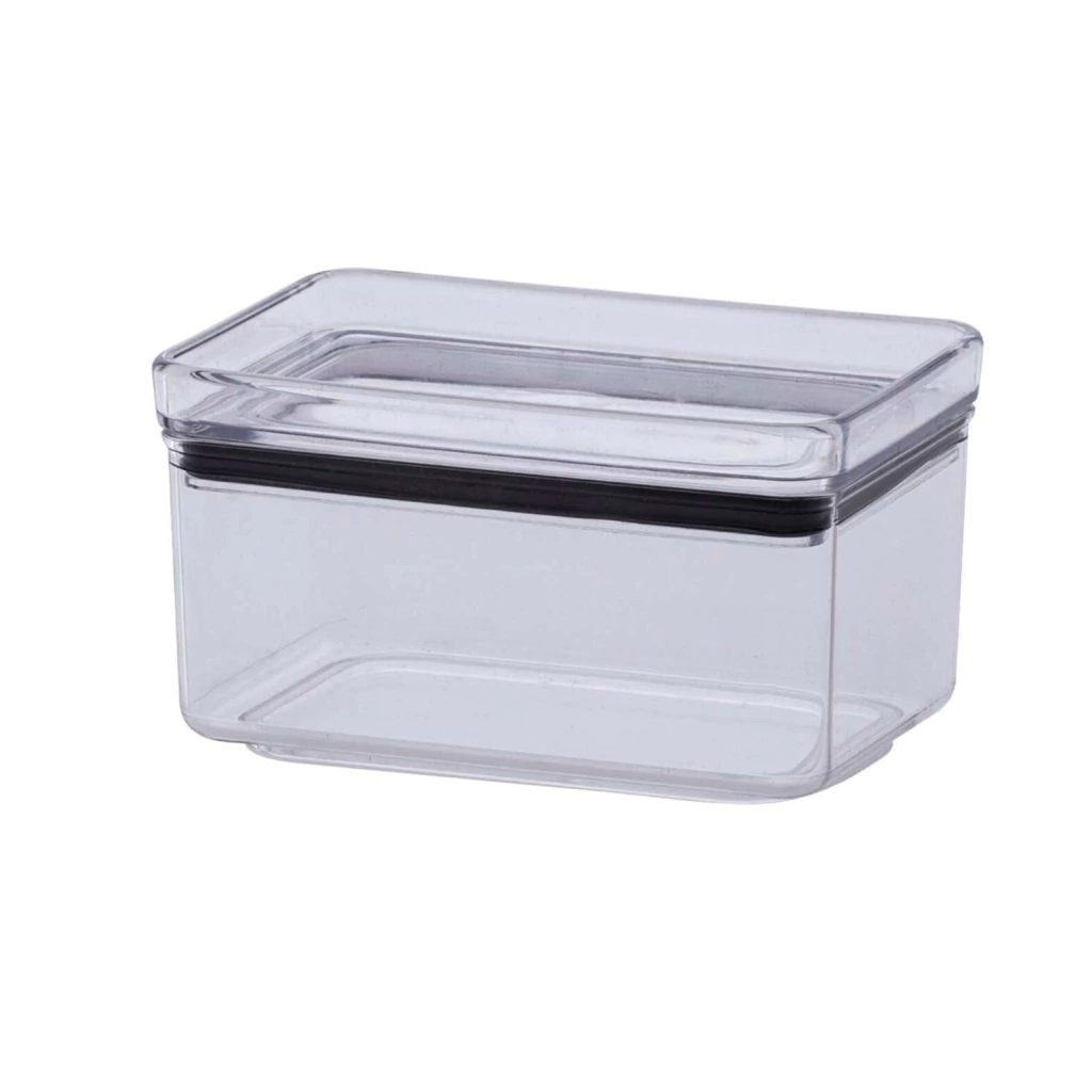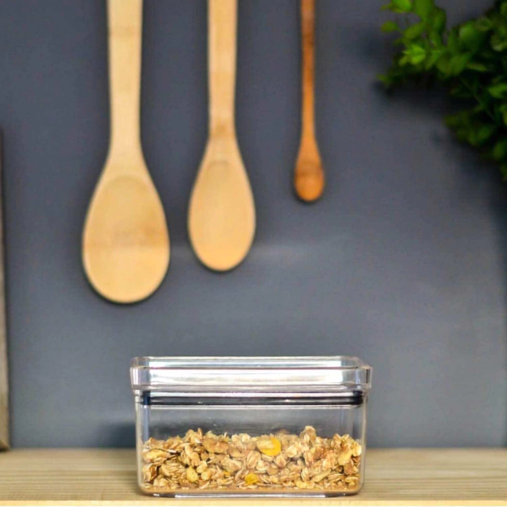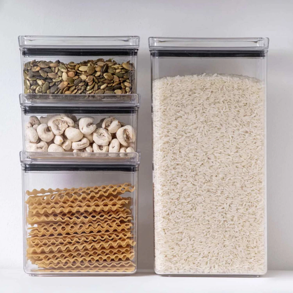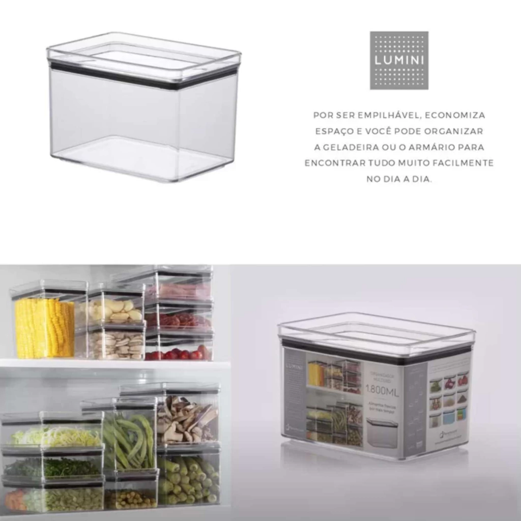 Apresenta um design que otimiza o espaço de armazenamento em armários e despensas. Fabricado em material transparente que permite visualizar facilmente o conteúdo armazenado.