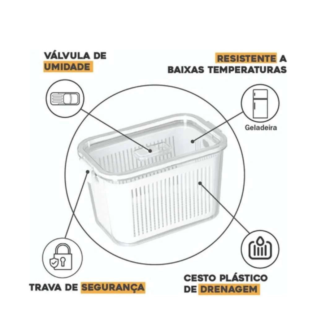 Ideal para organizar alimentos como vegetais, frutas, frios, condimentos e outros itens na geladeira. Pode ser usado também para armazenar alimentos secos na despensa ou para organizar utensílios pequenos na cozinha.