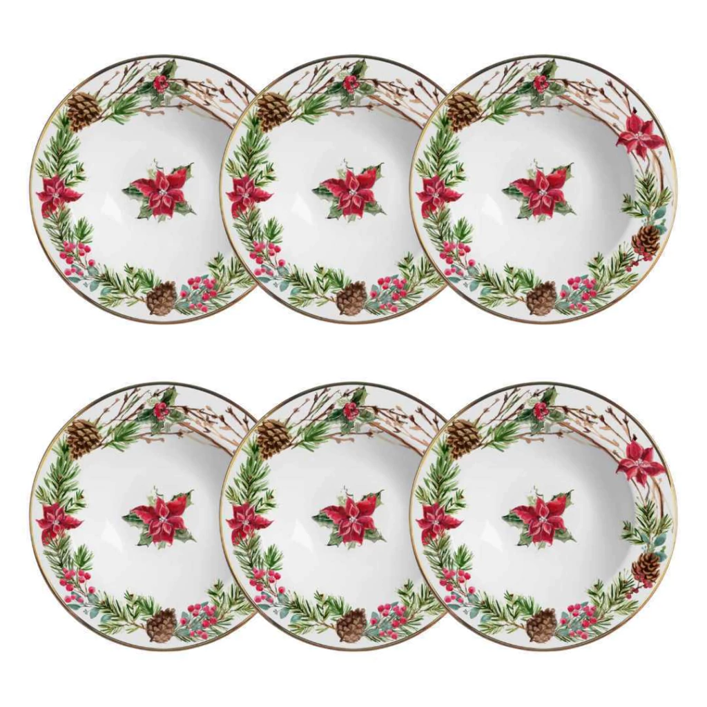 KIT 6 PRATOS FUNDOS GUIRLANDA FILETE DOURADO ALLEANZA