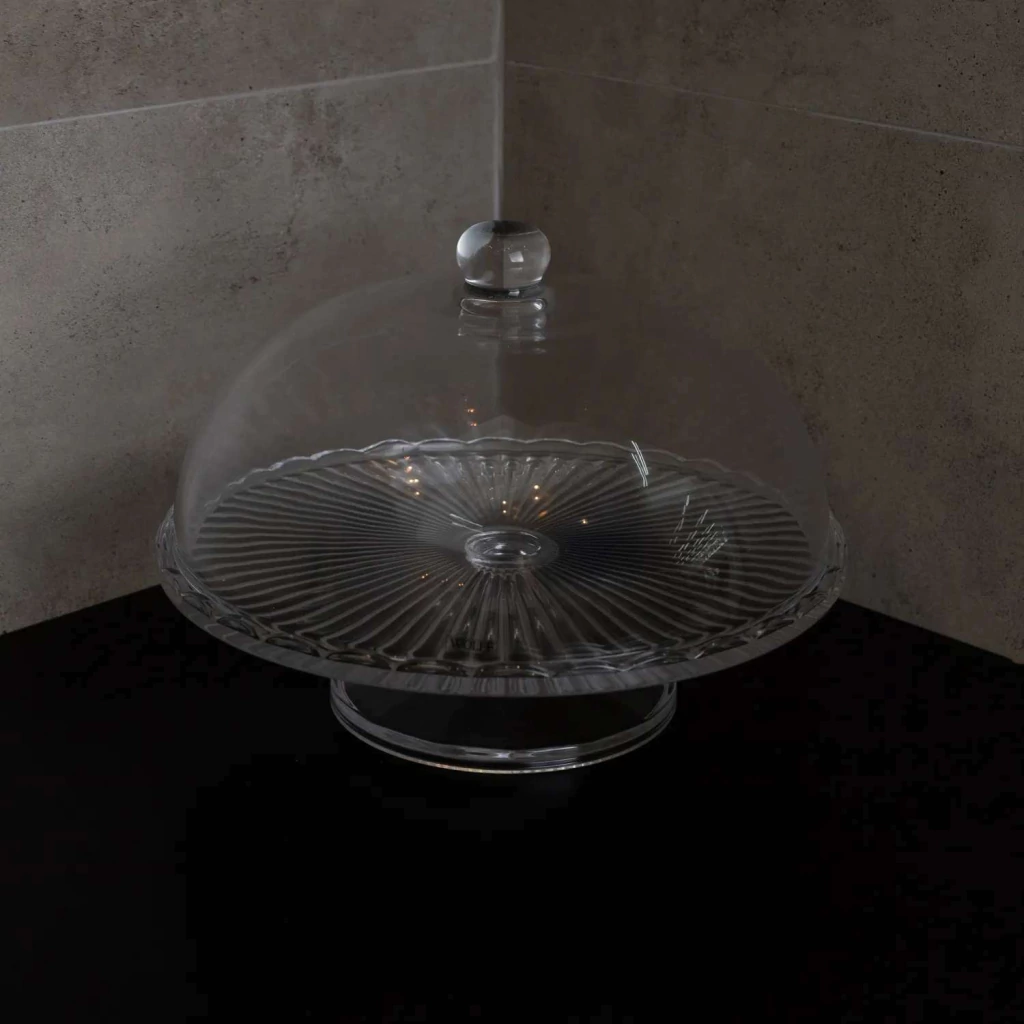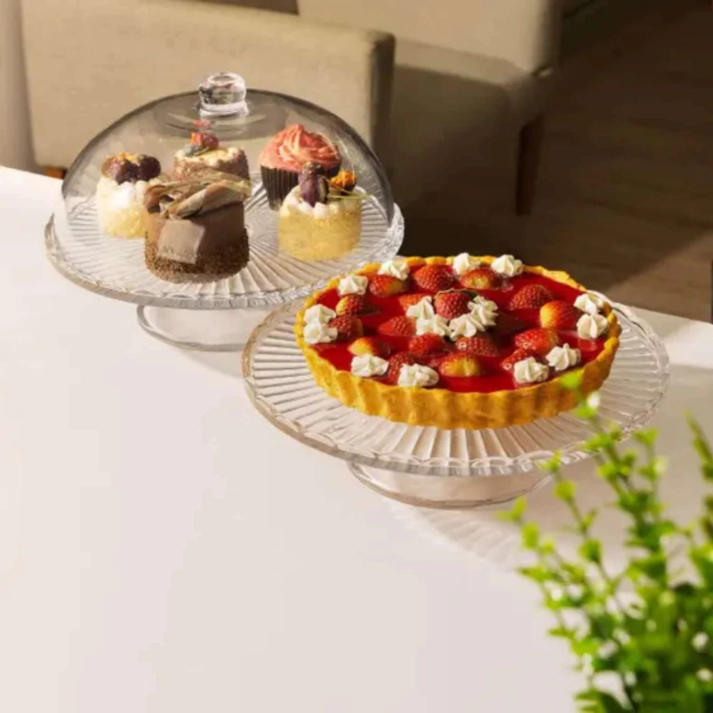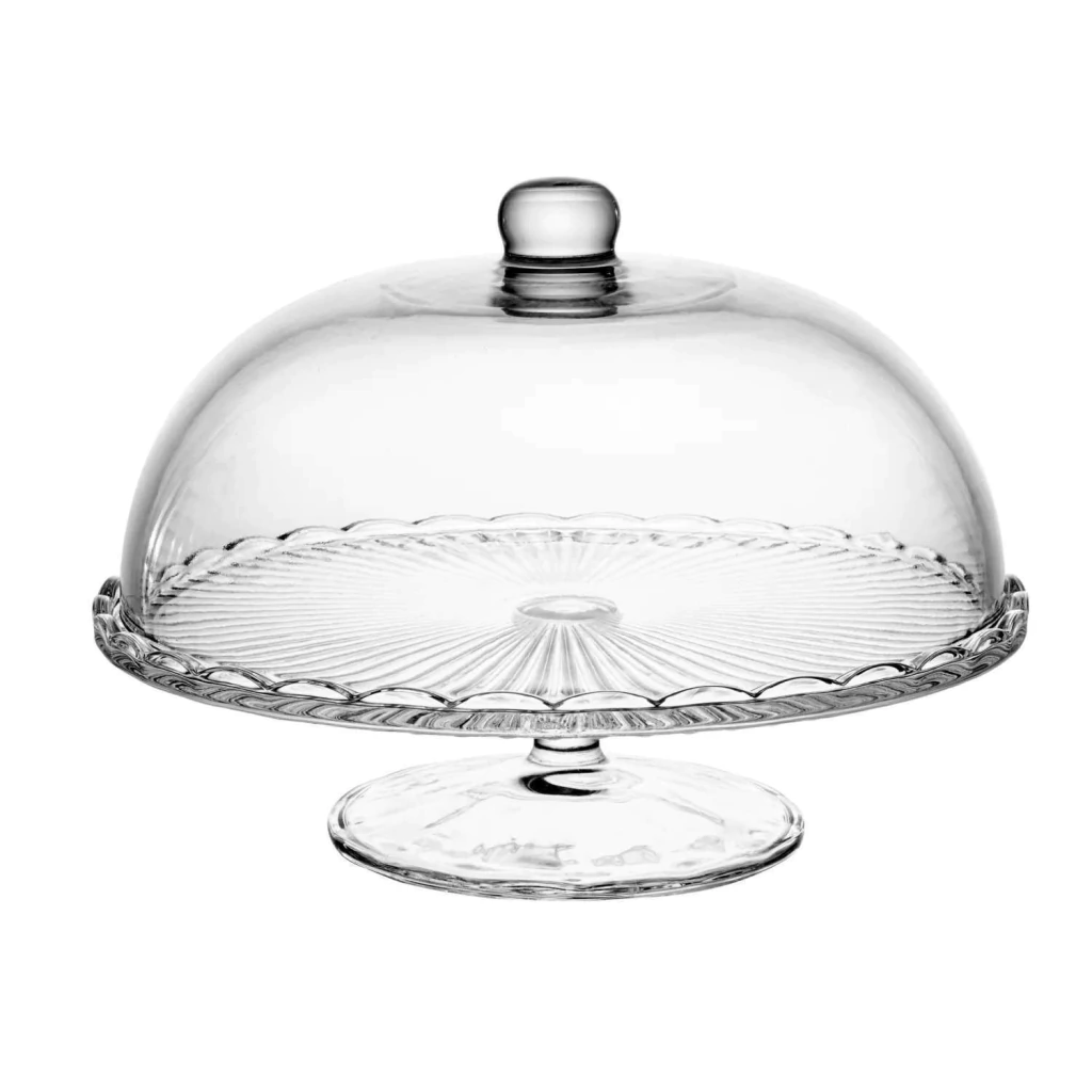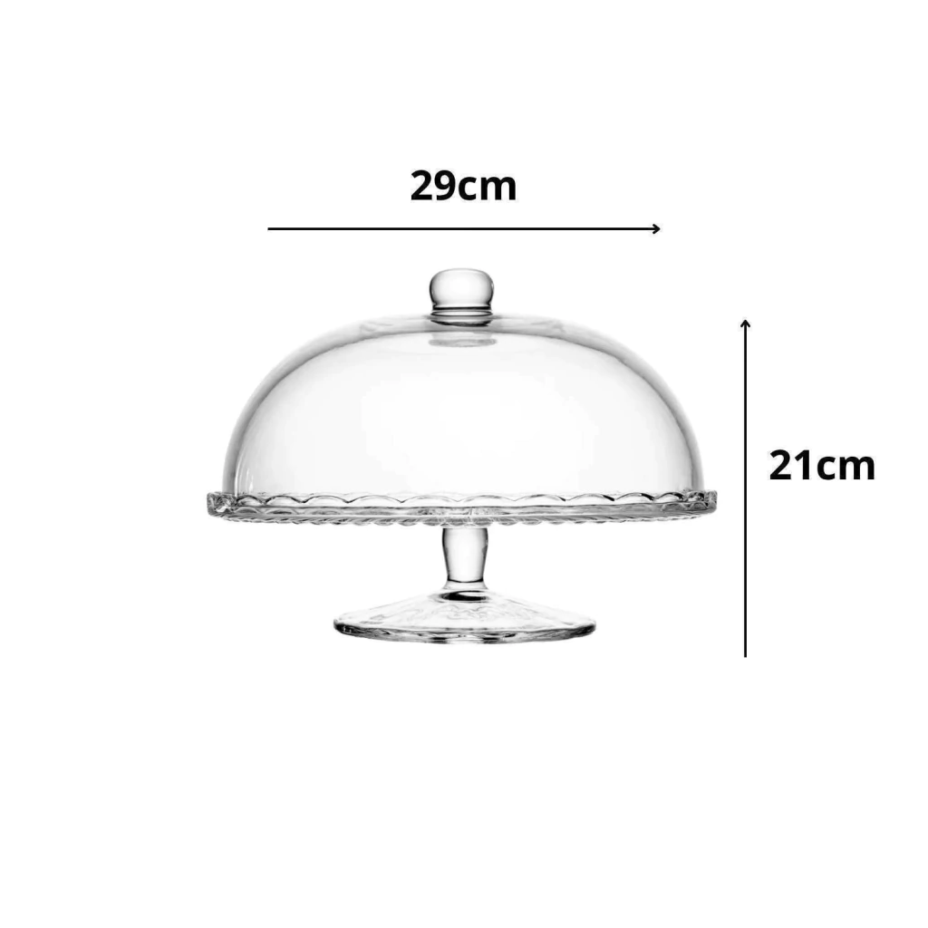 PRATO PARA BOLO COM PÉ DE VIDRO E COM TAMPA BANGKOK WOLFF 29CM X 21CM - CRISTAL
