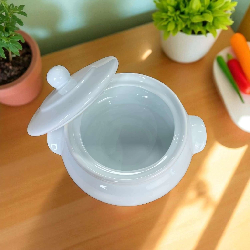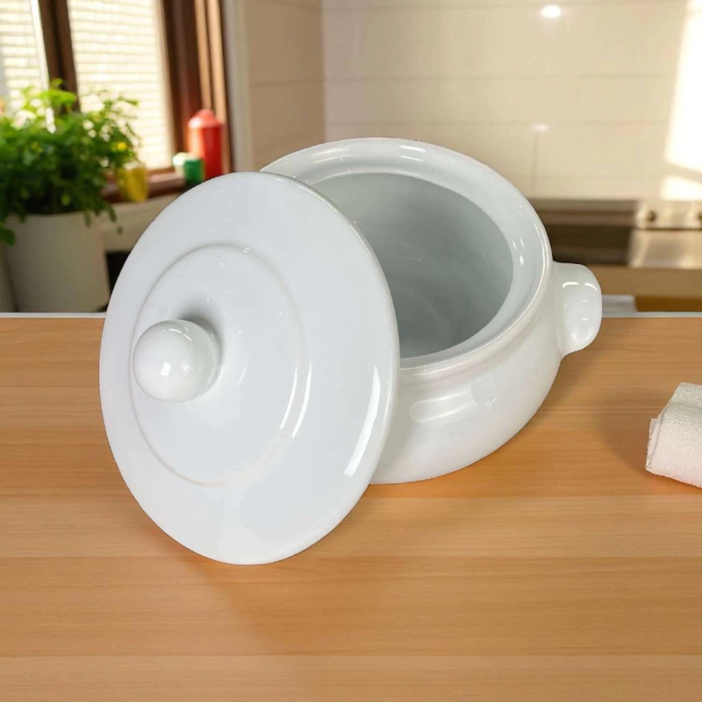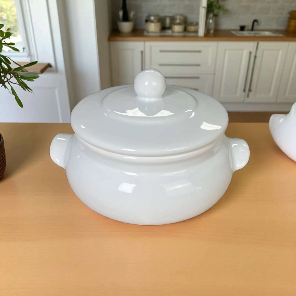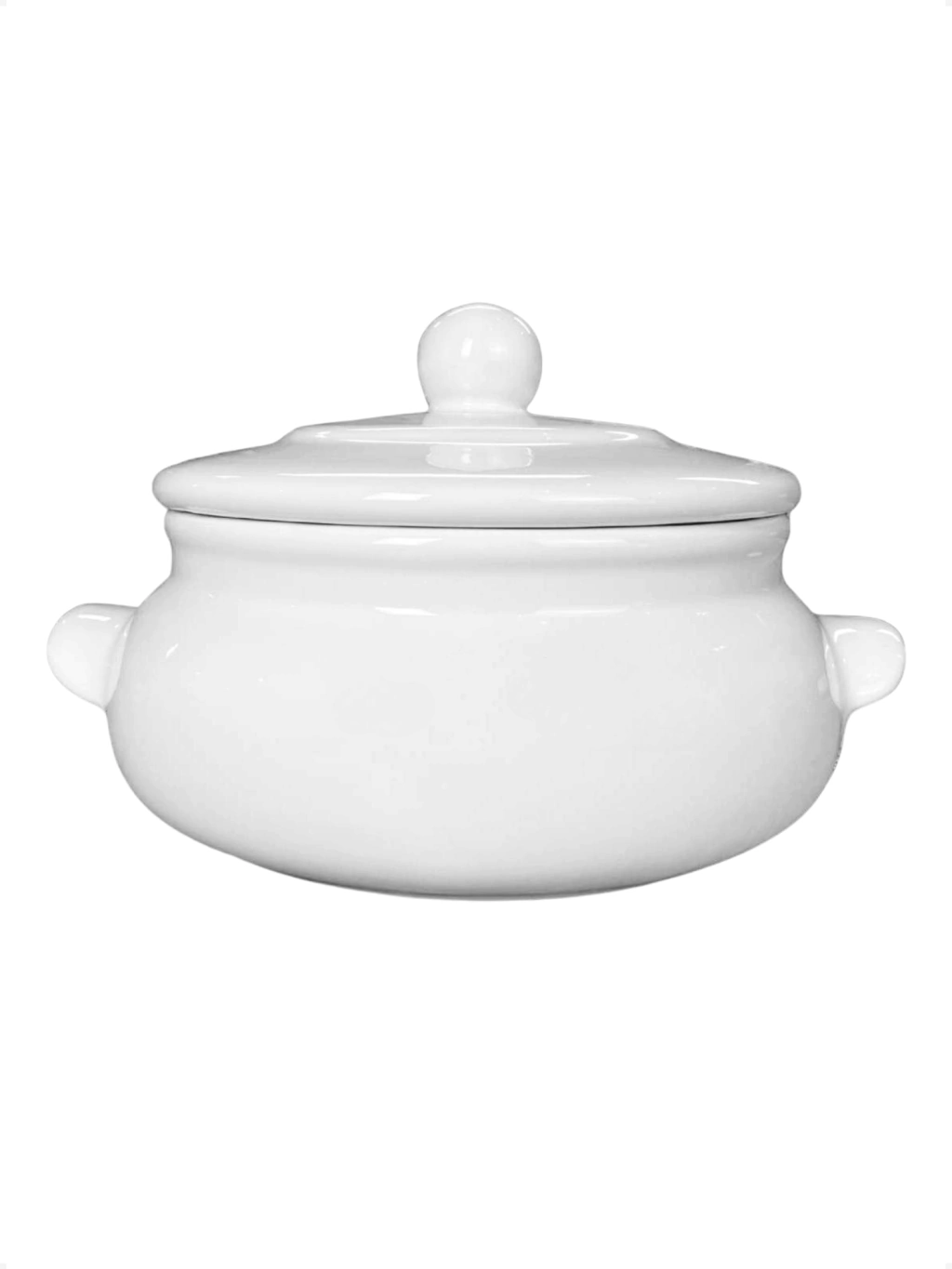 "Com design clássico e acabamento branco, esta sopeira média é ideal para servir com elegância. Um toque atemporal que valoriza qualquer composição à mesa."
