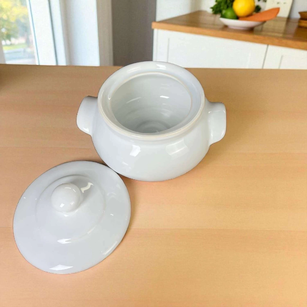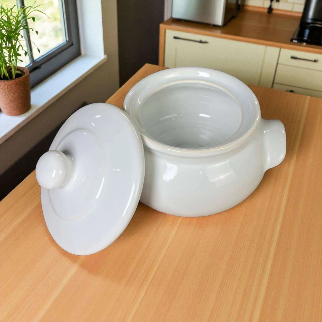 "Com design clássico e acabamento branco, esta sopeira pequena é ideal para servir com elegância em porções menores. Um toque atemporal que valoriza qualquer composição à mesa."