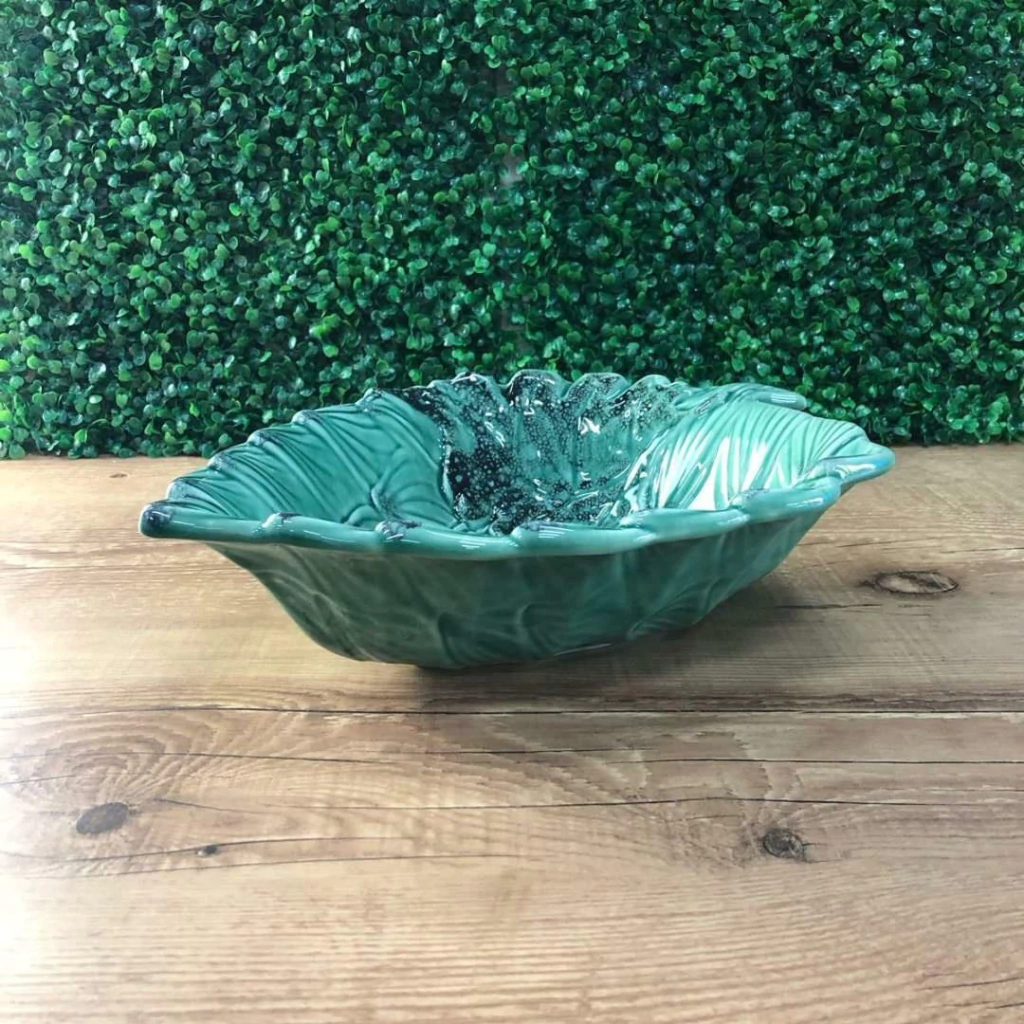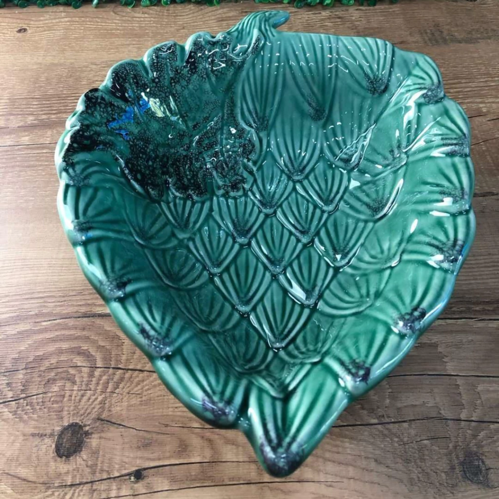 A tigela tem um design criativo e único em formato de alcachofra, com detalhes que lembram as folhas da planta.