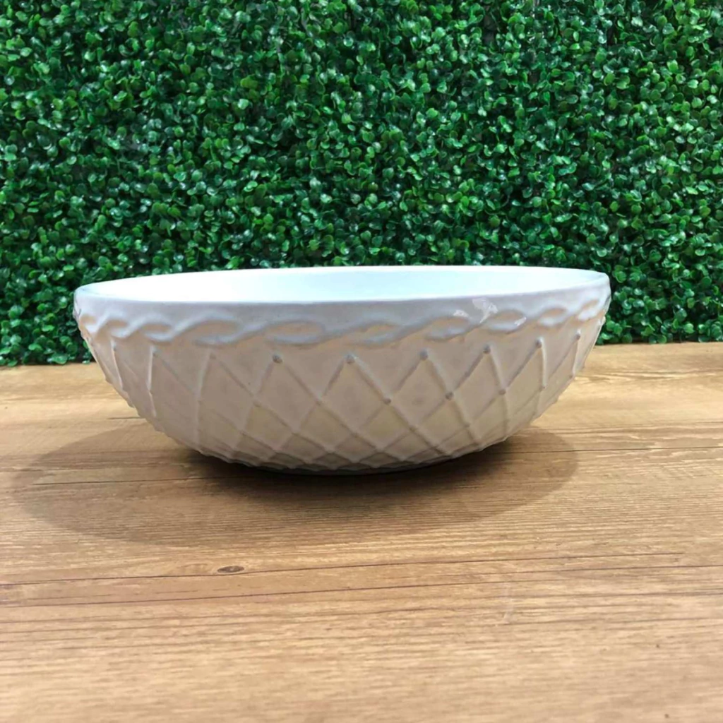 A tigela grande Aurora da Scalla apresenta um design elegante com relevo na parte externa não apenas adiciona textura visualmente atraente, mas também complementa a decoração da mesa, inspirado na beleza e na delicadeza da Provence.