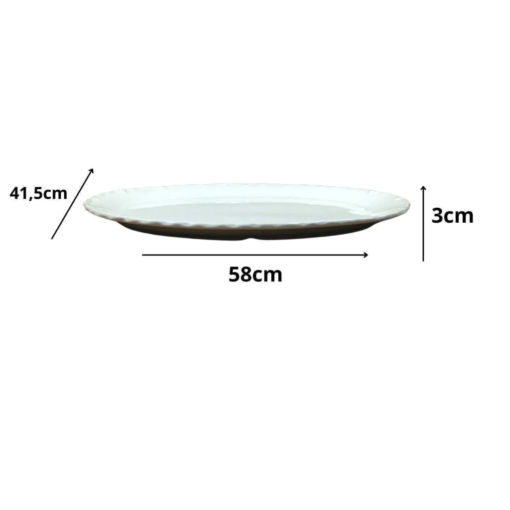 Com dimensões grandes, a travessa é ideal para servir porções abundantes de pratos como saladas, massas, carnes assadas e acompanhamentos, adequada para refeições em família ou eventos.