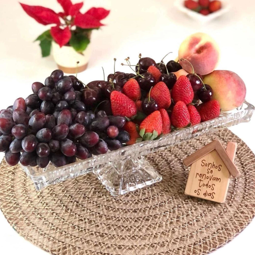 O design atemporal desta travessa com pé é uma homenagem à tradição da cristalografia. As linhas limpas e o acabamento impecável fazem dela uma peça que se destaca em qualquer configuração de mesa.