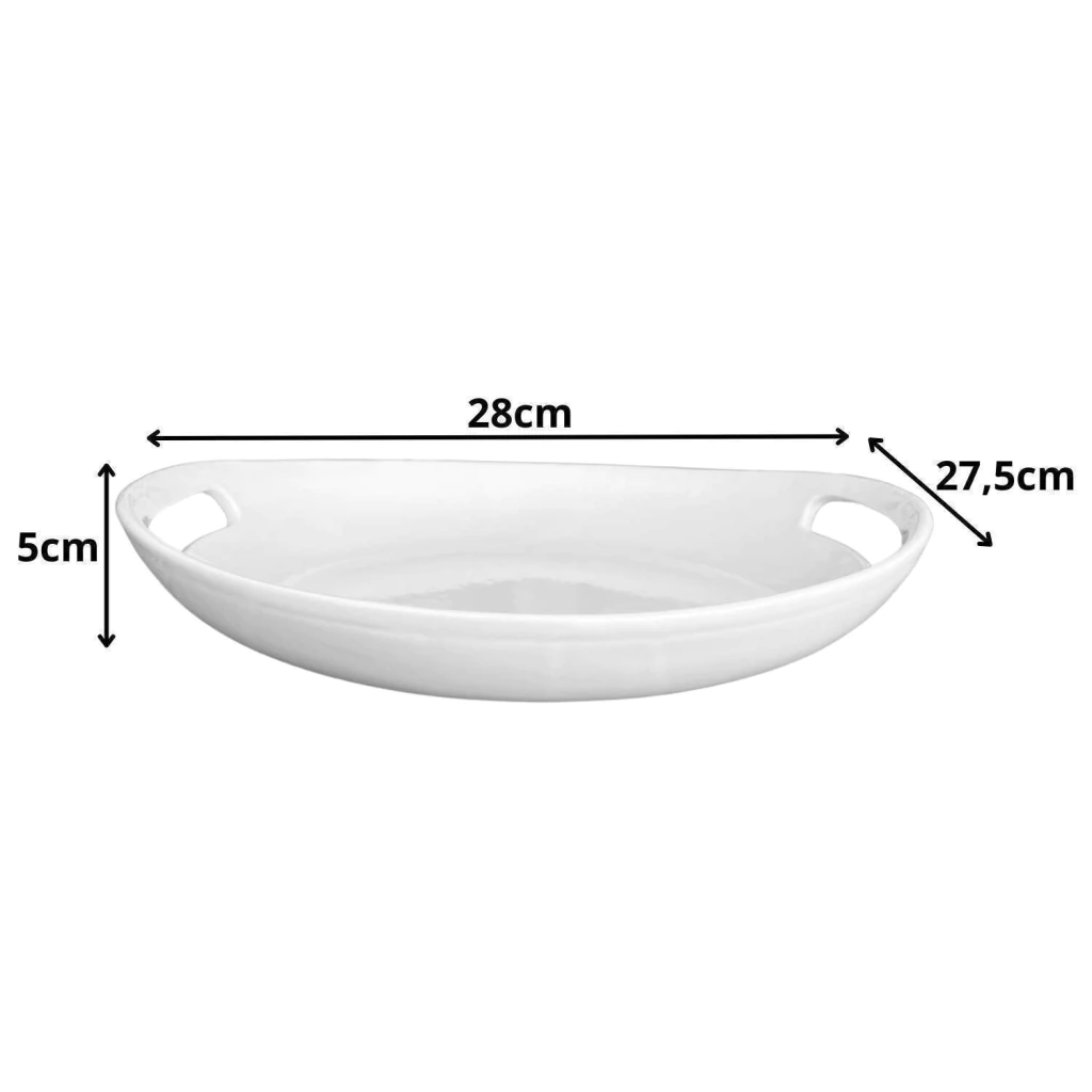 Com design funcional e elegante, a travessa branca com alça é perfeita para servir com charme e praticidade. Suas alças laterais facilitam o manuseio, enquanto o acabamento clean combina com qualquer estilo de mesa.