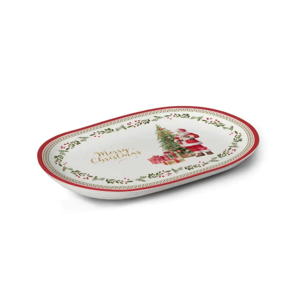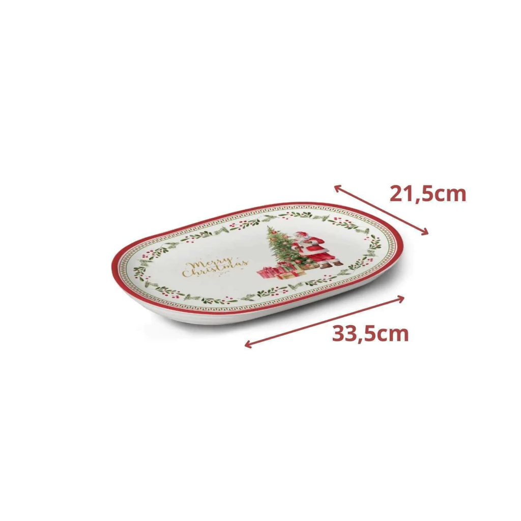 Com design natalino delicado e refinado, esta travessa decora a mesa com charme festivo e elegância clássica.