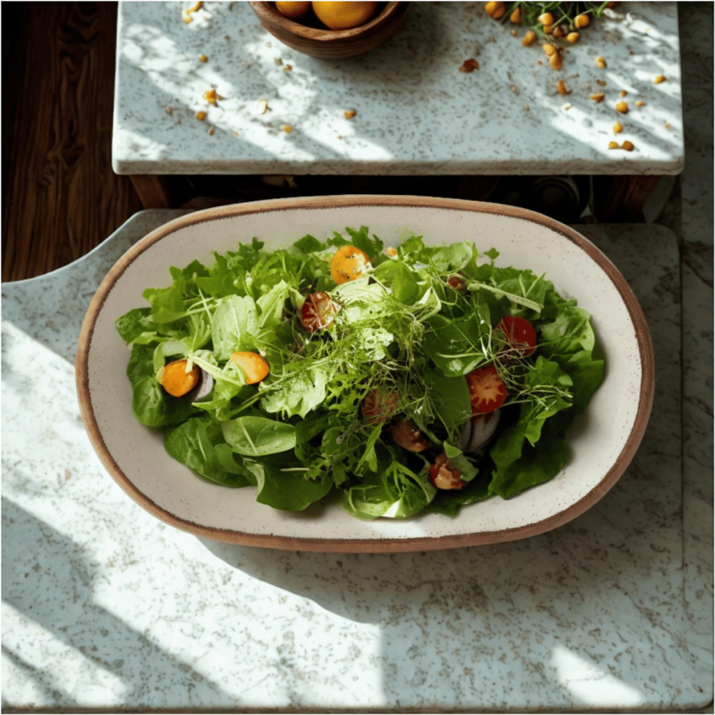 Travessa de melamina resistente, ideal para servir saladas, massas ou acompanhamentos com estilo.