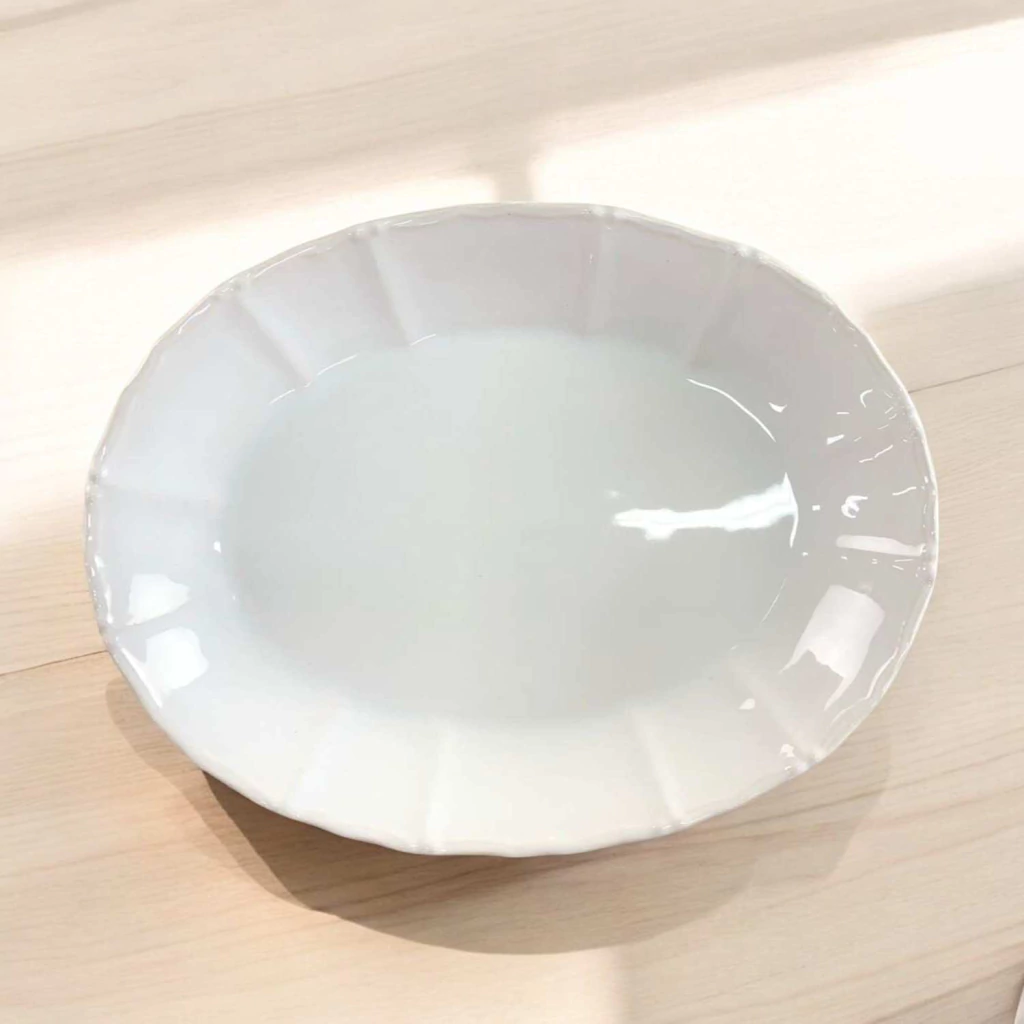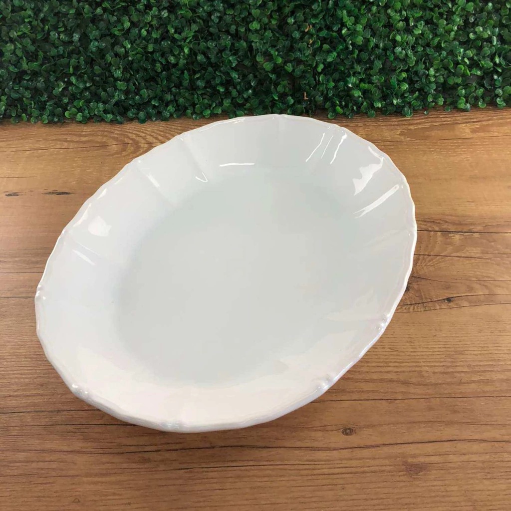 TRAVESSA OVAL FUNDA MÉDIA CRISTAL BRANCO BORDA LISA SCALLA