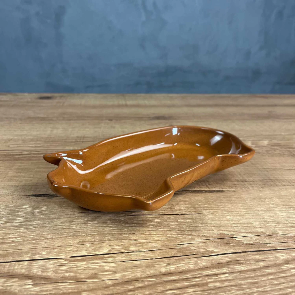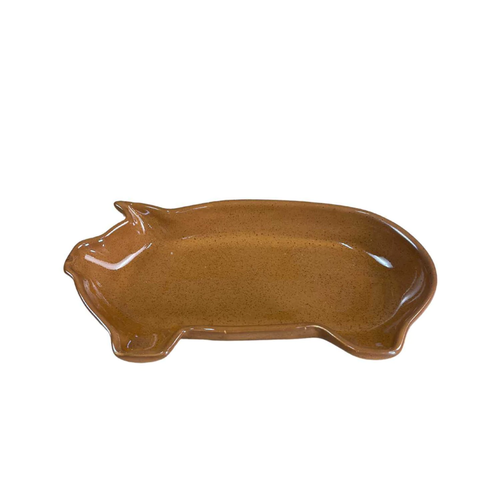 Moldada no formato de um porco, esta peça traz um toque lúdico e criativo à mesa. O tom quente e terroso evoca um visual rústico e acolhedor, perfeito para ambientes descontraídos.